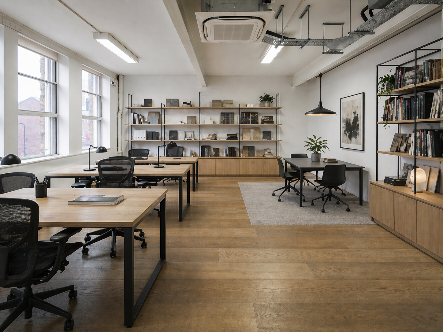 It positions the building for a branding agency, design studio, content studio, or creative HQ occupier. The fit-out should feel premium, calm, mature, editorial, not startup-gimmicky.