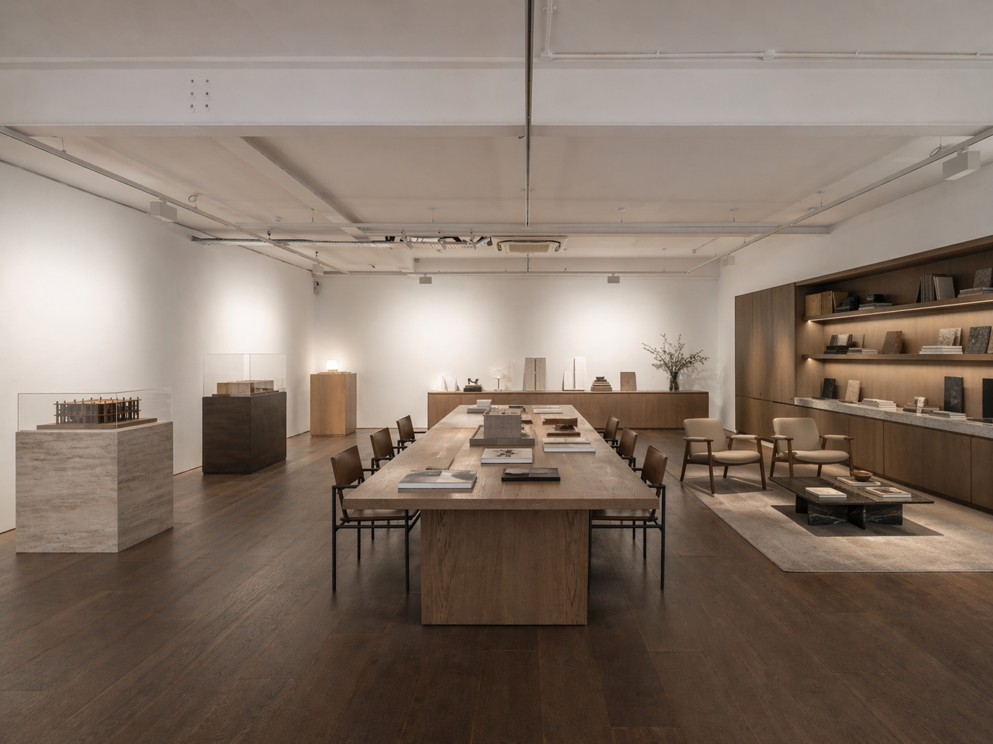 It uses the building’s gallery character and street presence to position it as a brand house rather than a generic office.